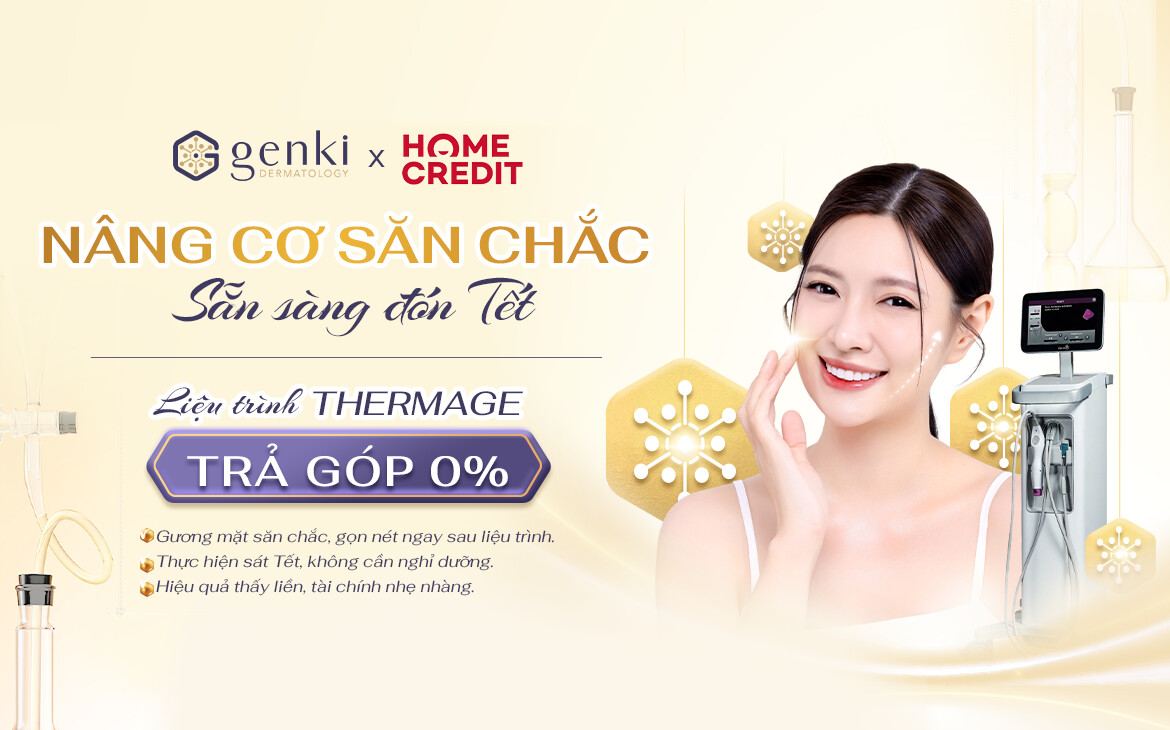 Hiểu được điều đó, Genki Derma mang đến giải pháp nâng cơ không xâm lấn với Thermage FLX, giúp gương mặt săn chắc, gọn nét tức thì. Đồng thời, phòng khám triển khai chương trình trả góp lãi suất 0%, giúp khách hàng an tâm làm đẹp đón Tết mà không cần áp lực về chi phí.